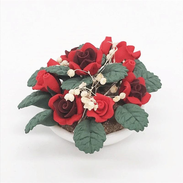 1:12 Mini House Toy Simulation Flower Potted Rose Bauble for Garden(Red)