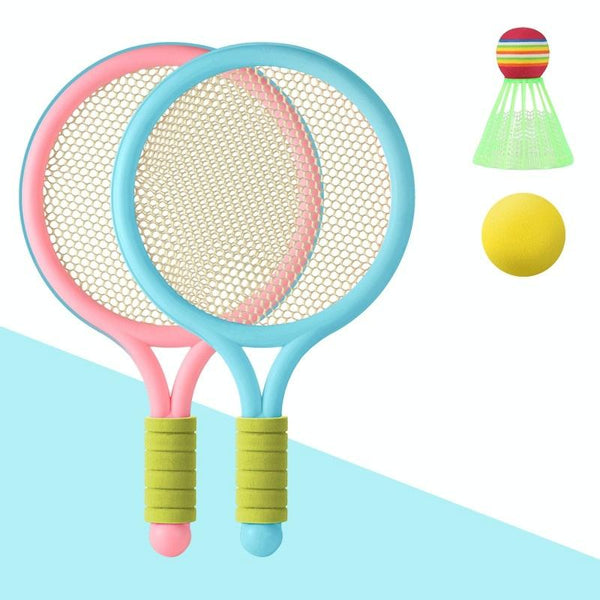 1 Pair Children Badminton Tennis Racket Outdoor Sports With Two Balls(Blue Pink)