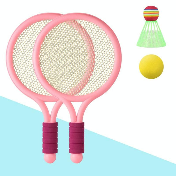 1 Pair Children Badminton Tennis Racket Outdoor Sports With Two Balls(Pink)