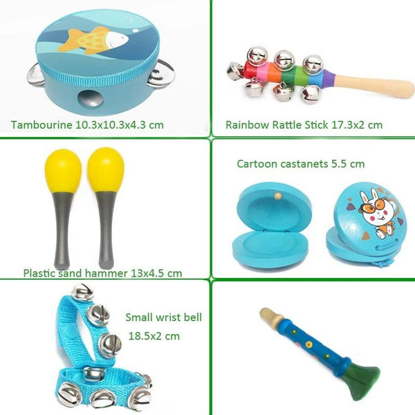 10 in 1 Children Musical Instrument Combination Wooden Early Education Baby Musical Instrument Toys(Boy)