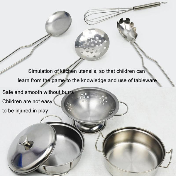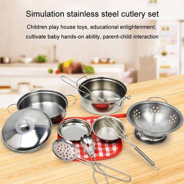101 Kids Play House Simulation Stainless Steel Tableware Toys Kitchen Early Learning Enlightenment Toy