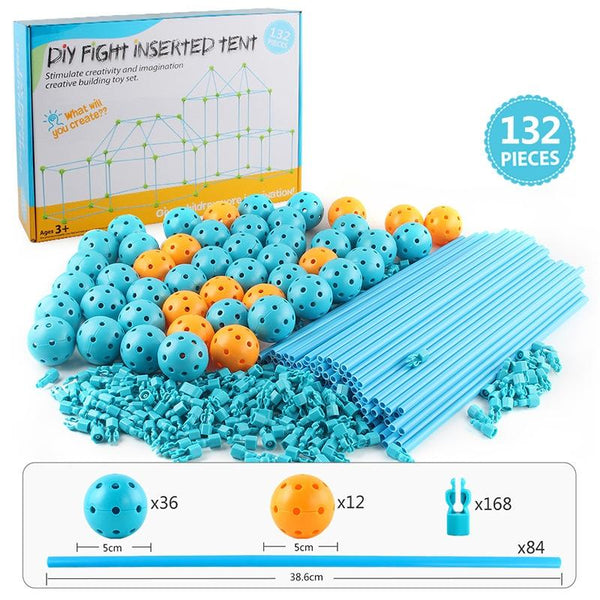 132 in 1 DIY Tent Toy Assembling Play House DIY Children Tent Building Toy( Round-Blue)