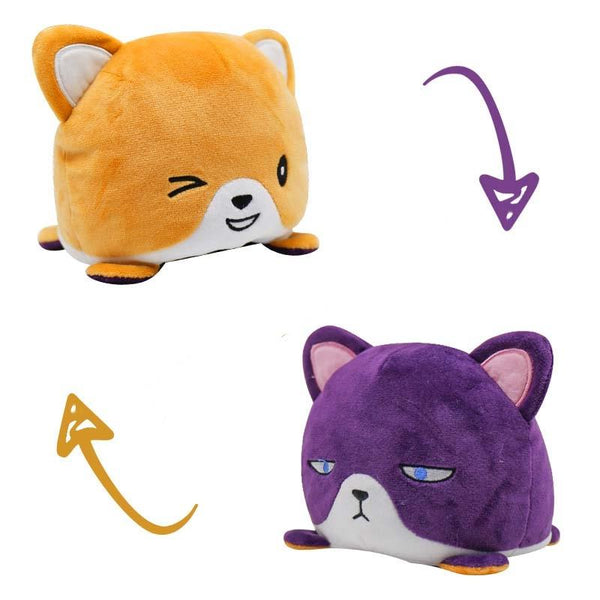 15cm Flipped Doll Double-Sided Expression Flipped Animal Cartoon Doll Plush Toy(Orange Purple Puppy)