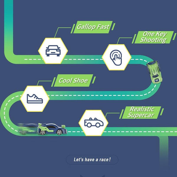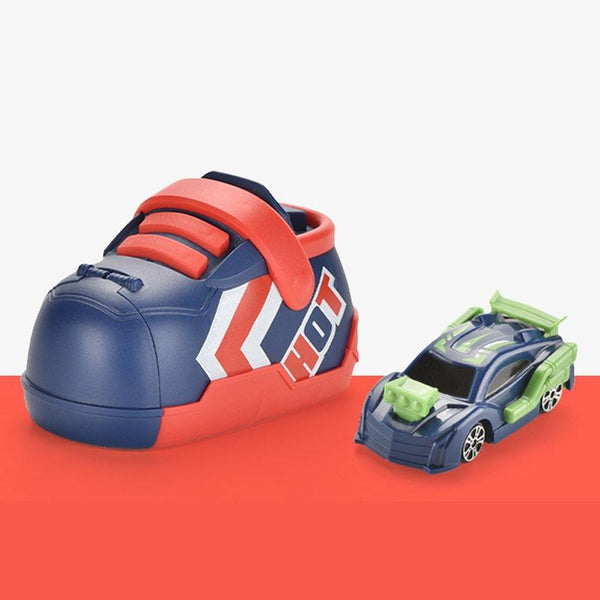 2. Unique design, 2 in 1 car toy, the car toy comes with 1x shoe launcher and 1x racing car toy, the cute shoe launcher can also store the car toy to support your child to play fighting games