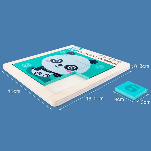 2 PCS Cartoon Animal Double-Sided Klotski Puzzle Children Wooden Toy Early Education Jigsaw Puzzle(White Bear)