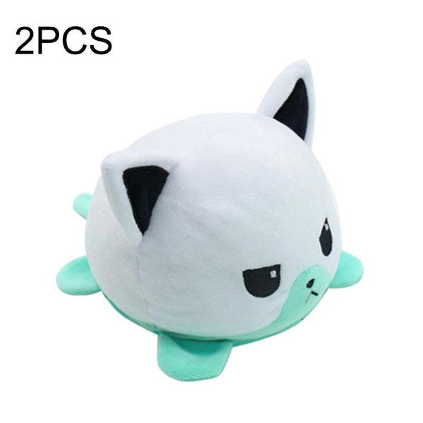 2 PCS Cute Plush Flip Toy Double-Sided Doll(Blue White Kitten)