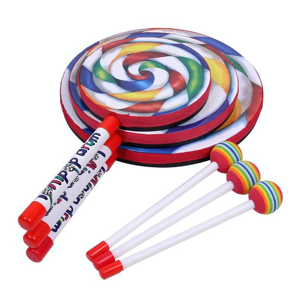 2 PCS Orff Percussion Instrument Parent-Child Teaching Kids Lollipop Drum Early Education Tambourine, Size: 8 Inch