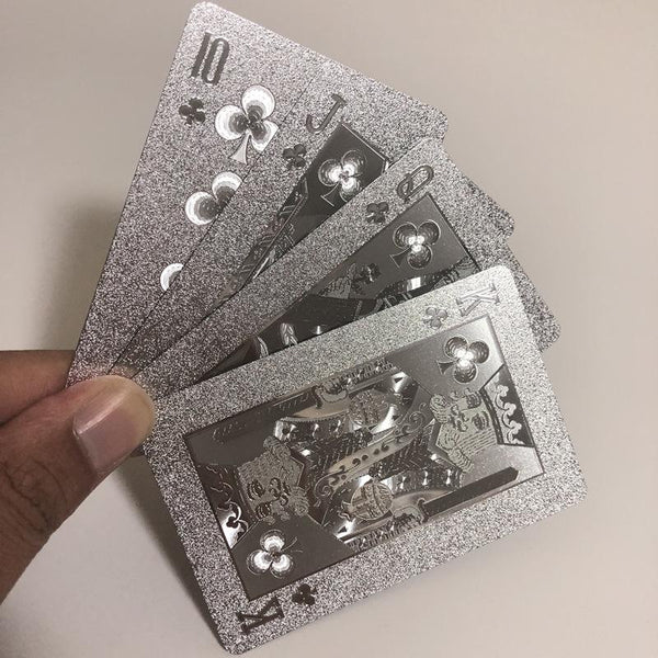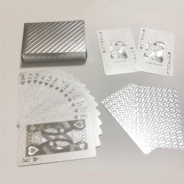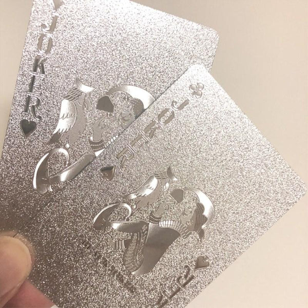 2 PCS Waterproof Durable Silver Foil Plastic Creative Playing Cards Gift
