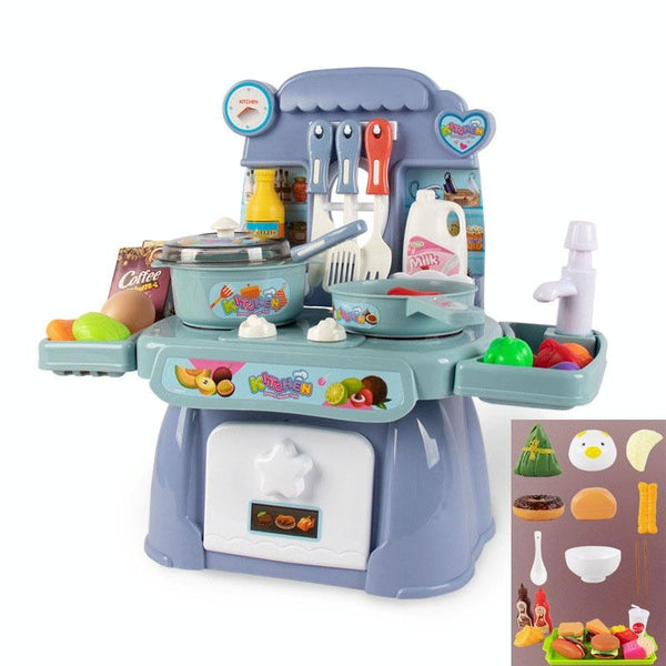 24 In 1 Childre Mini Kitchen Toys Girls Simulation Play House Cooking Kitchen Set, Model: With18pcs Burgers Blue