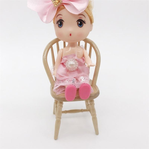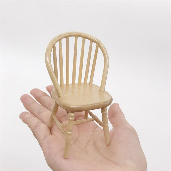 3 PCS 1:12 Doll House Chair Furniture Mini Scene Display(Log Color)