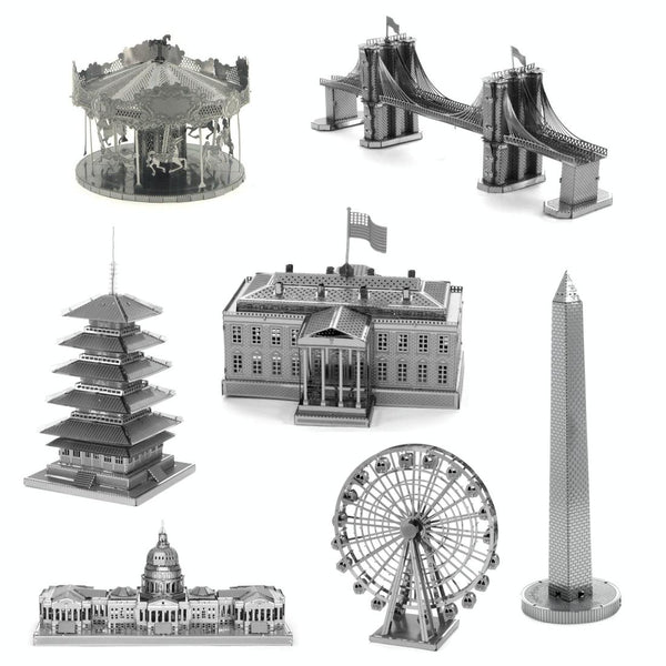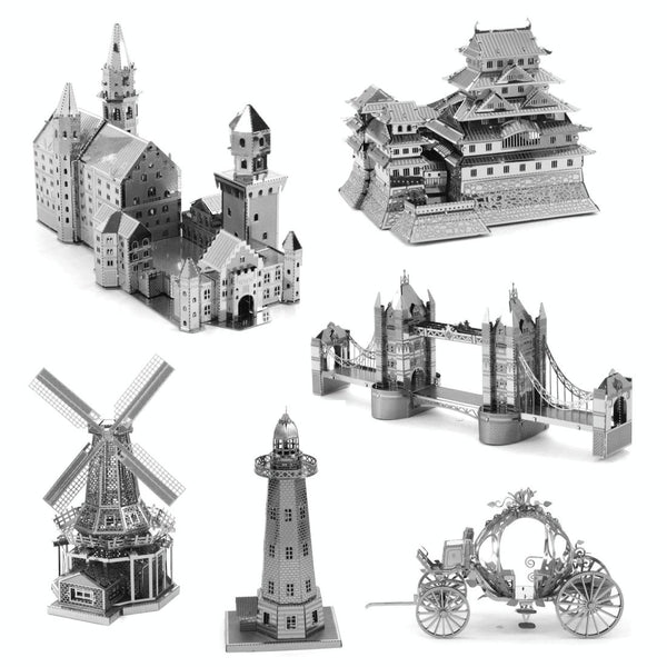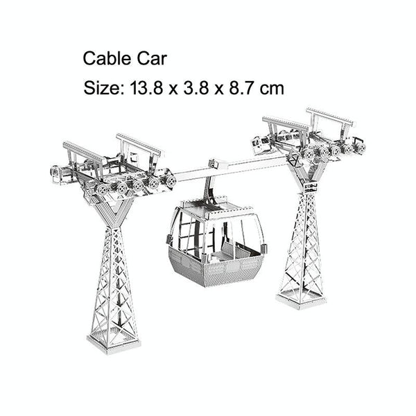 3 PCS 3D Metal Assembly Model World Building DIY Puzzle Toy, Style:Cable Car
