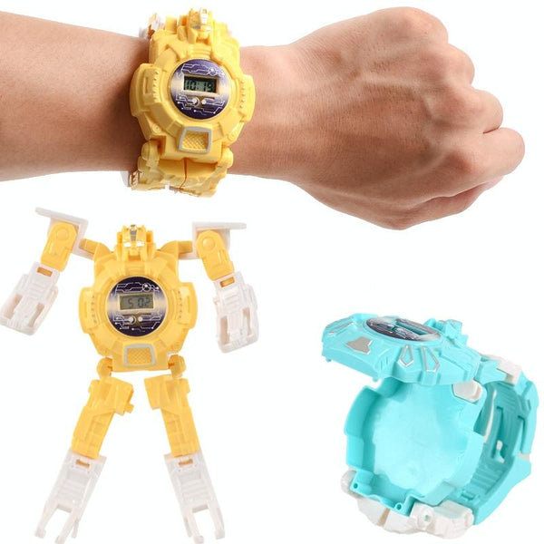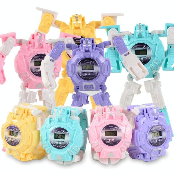 3 PCS Children Electronic Watch Cartoon Deformation Robot Toy Watch(Blue)