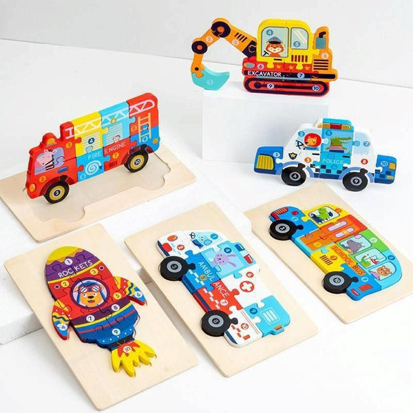 3 PCS Three-dimensional Buckle Traffic Puzzle Cognitive Puzzle Wooden Toy(Excavator)