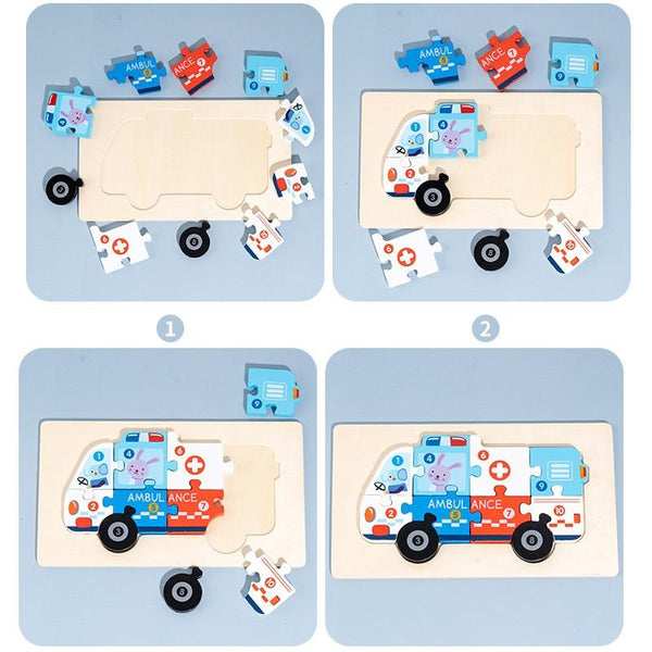 3 PCS Three-dimensional Buckle Traffic Puzzle Cognitive Puzzle Wooden Toy(Fighting Truck)