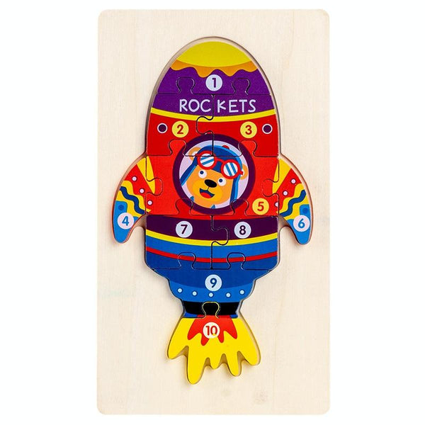 3 PCS Three-dimensional Buckle Traffic Puzzle Cognitive Puzzle Wooden Toy(Rocket)