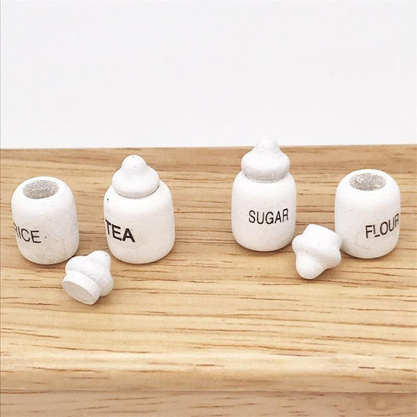 3 Sets 1:12 Mini Doll House Dollhouse Miniatures Furniture Food Play Tea Salt Jar 4 PCS / Set