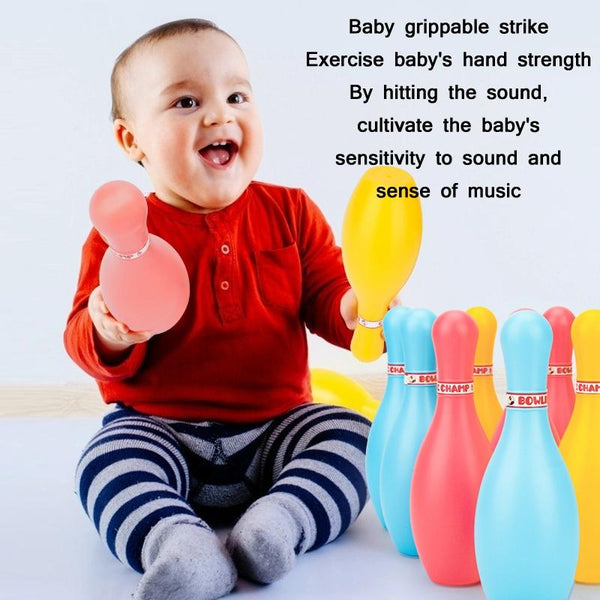 3 Sets Children Sports Recreation Plastic Bowling Toy Set, Size: 15cm