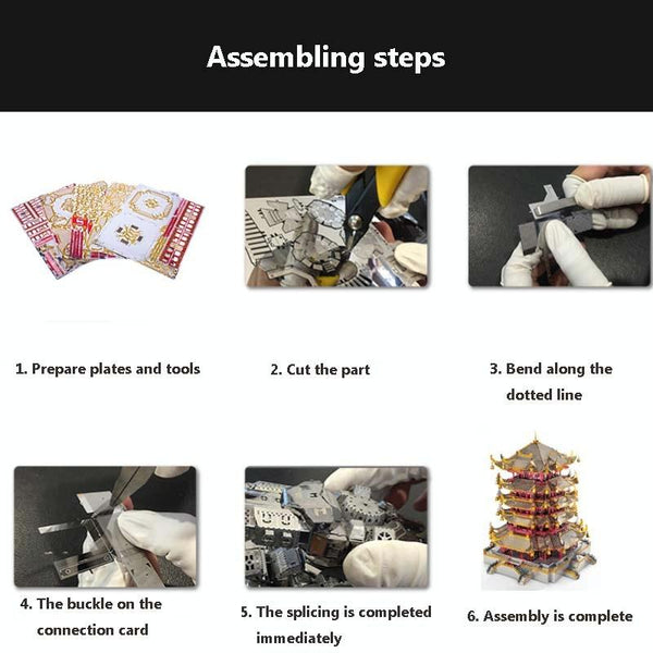 3D Metal Assembly Model Tower of Yellow Crane Puzzle Toy