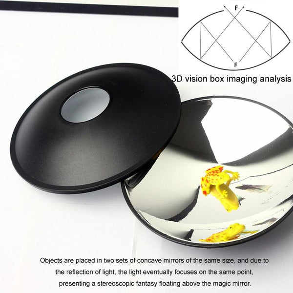 6. Principle: put the object in two concave mirrors of the same size, due to the reflection of light, the light will eventually focus on the same point, presenting a three-dimensional illusion of floating above the mirrors