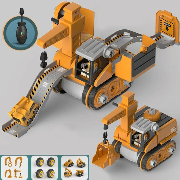 4 in 1 DIY Assembled Engineering Vehicle Rail Sliding Car Manual Version