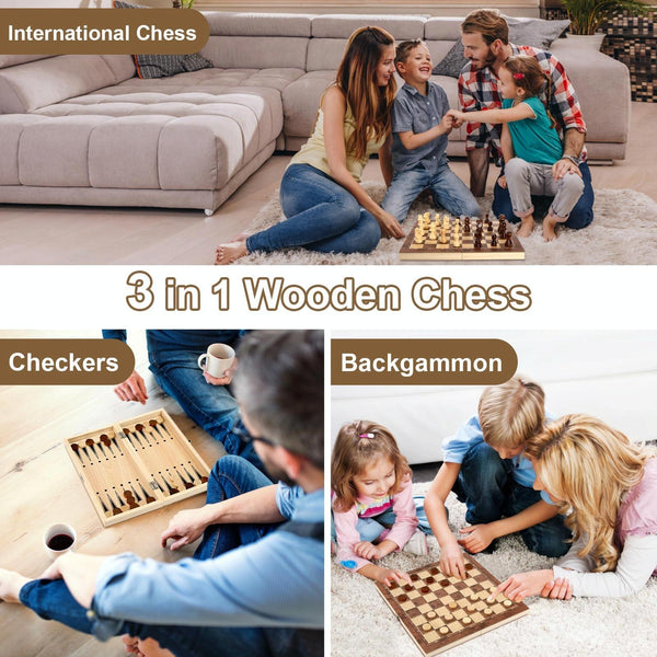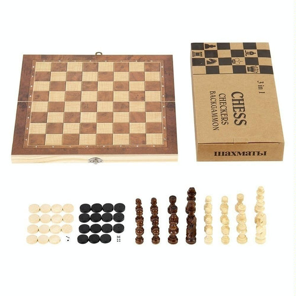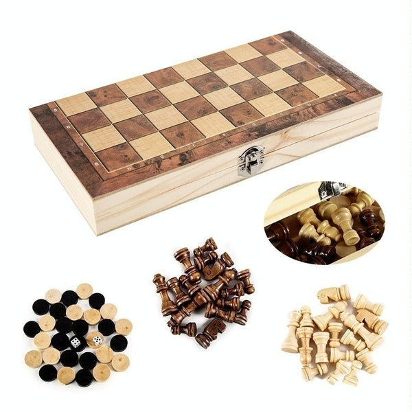44 x 44cm 3 In 1 Wooden Chess Set Foldable Chess Board For Kids Adults