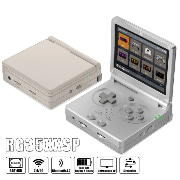 1. RG35XXSP flip game console, supports 30+ simulator platforms, supports 2.4G wireless controller, Bluetooth controller and wired controller connection, supports WIFI two-player battle, streaming