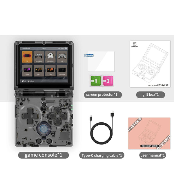 ANBERNIC RG35XXSP 3.5'' IPS Screen Flip Handheld Console Linux System WIFI Retro Video Game Player64G+128G(Black Transparent)