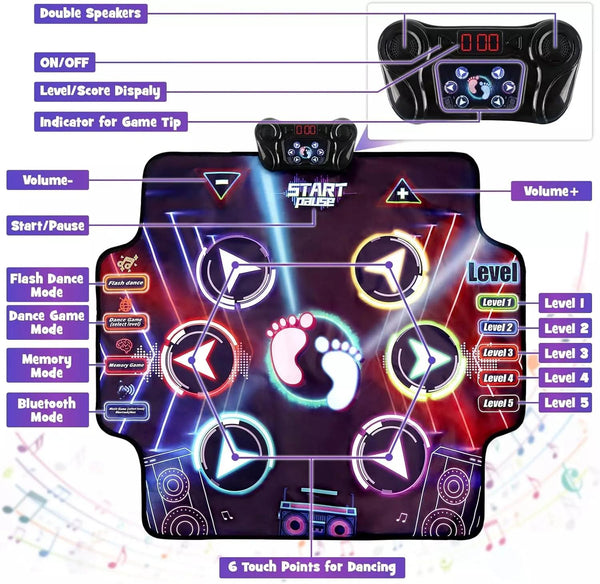 1. The childrens dance mat is suitable for children aged 3-12 years old and has multiple difficulty levels so that older children or children with higher skill levels can also enjoy the challenge.