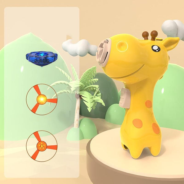 Cartoon Children Spinning Top Toy Outdoor Luminous Flying Saucer Launcher, Specification: Yellow Giraffe
