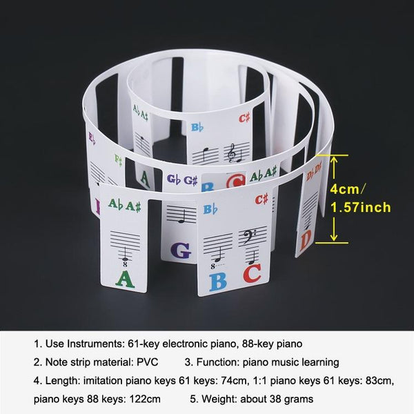 5. Easy to install, look for the middle C key marked on the piano key label to match, press the same key on the piano, then flatten and stack the notes on the keyboard.