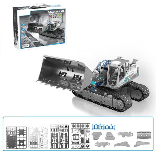 Children DIY Assembly Engineering Fleet Hydraulic Power Crawler Toy(Bulldozer)