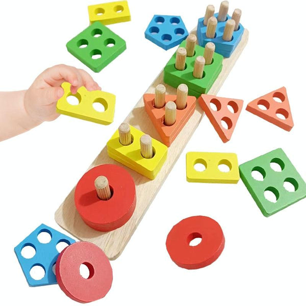 Children Geometric Shapes Color Matching Building Blocks Columns Toys(21 In 1 Colorful)