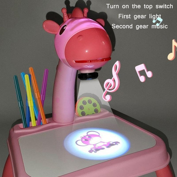 Children Multifunctional Projection Painting Toy Writing Board, wthout Watercolor Pen, Style: Giraffe Pink