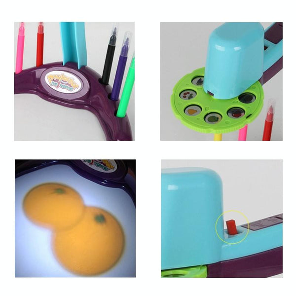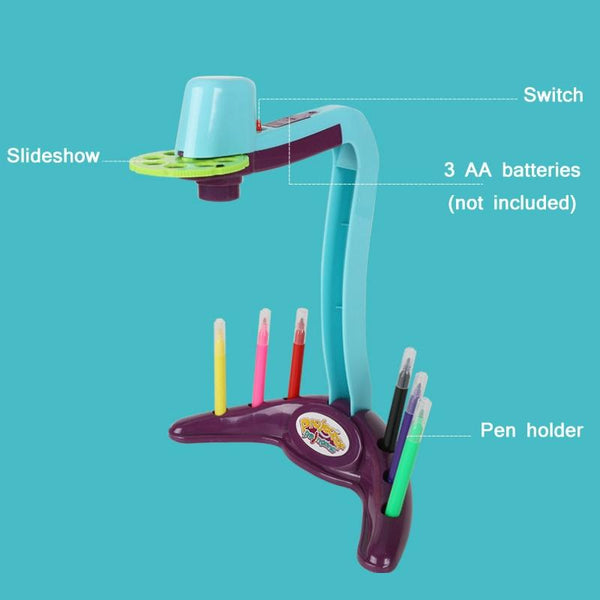 Children Multifunctional Writing Drawing Board Projection Lamp, without Watercolor Pen(Blue)