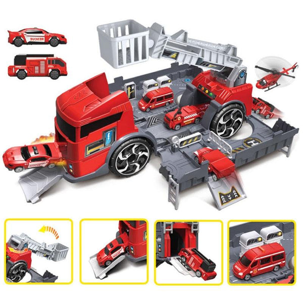 Children Toy Tractor Container Truck Simulation Parking Lot Car Model Set(Fire Engine)