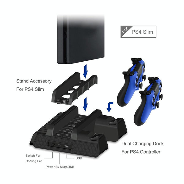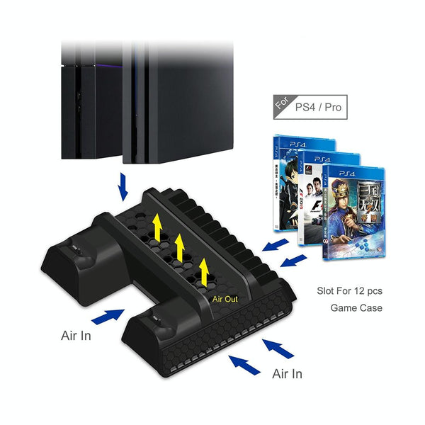 DOBE TP4-882 3 in 1 Game Console Cooling Fan + Game Storage Slots + Game Controller Charging Dock for Sony PS4 / PS4 Pro / PS4 Slim(Black)