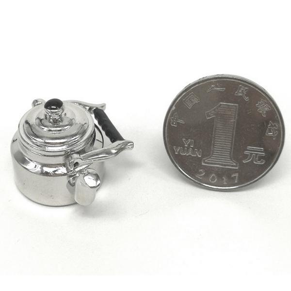 Dollhouse Miniature Metal Tea Kettle Pot Classic Pretend Play Furniture Toys for Kitchen Accessory