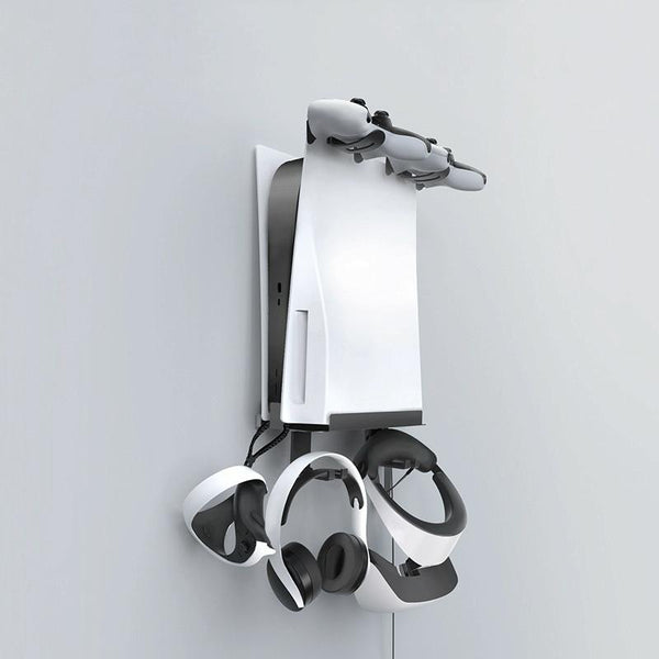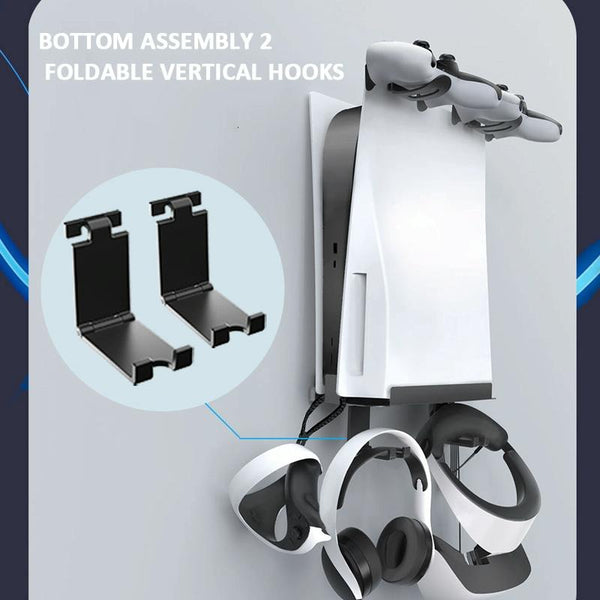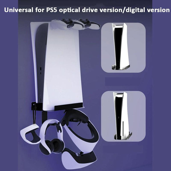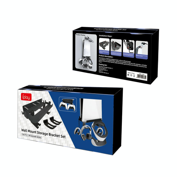 For PS5 Console iplay Wall-mounted Bracket Can Store Controllers/VR Glasses/Headphones(Black)