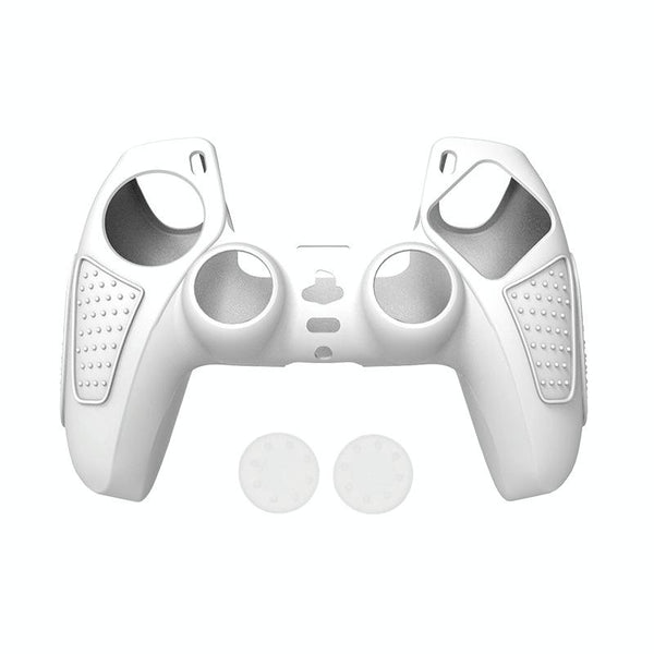 For PS5 Gamepad Silicone Protective Case Anti-Skid Soft Silicone Cover, Color: White+2 Hats