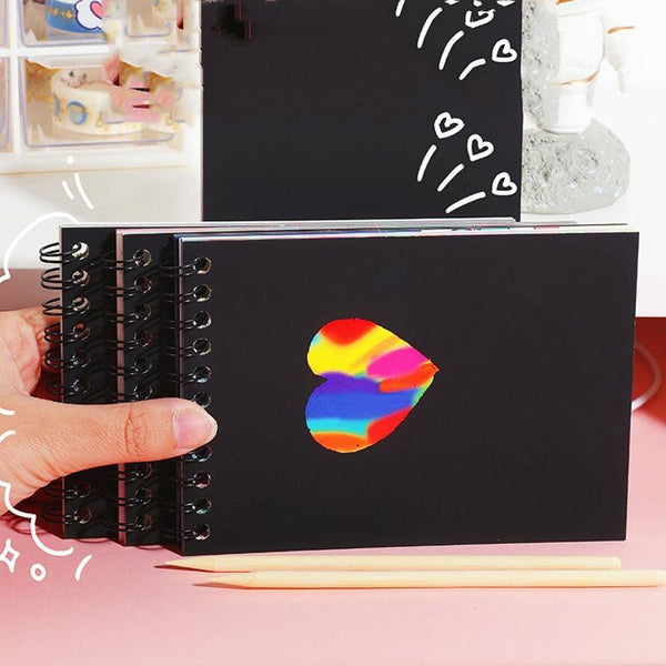 Hand Painted Scratch Paper Colorful Coil Scratchbook With Pen, Model: Haruita Huahua
