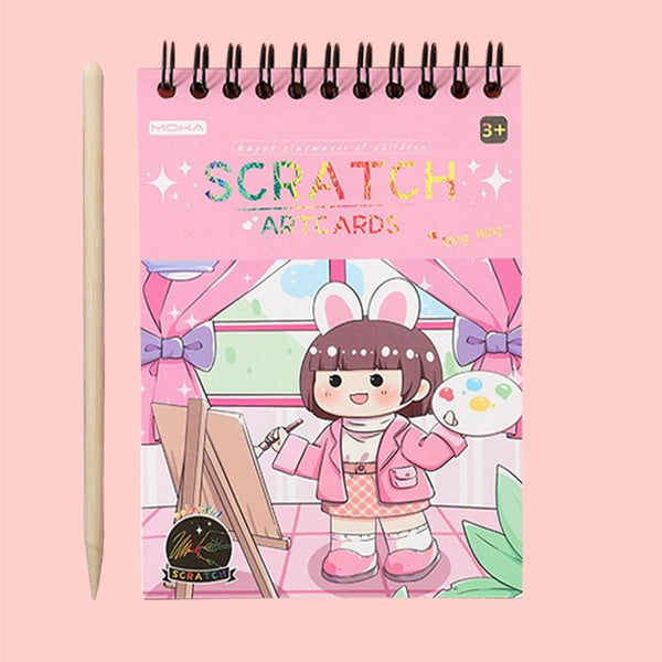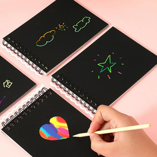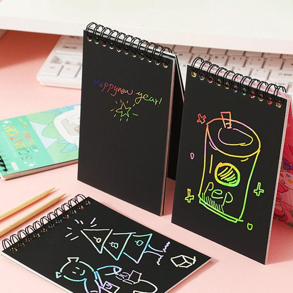 Hand Painted Scratch Paper Colorful Coil Scratchbook With Pen, Model: Millet