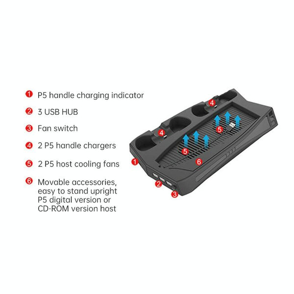 KJH P5-010 Vertical Charging Stand With Cooling Fan For PS5 De / UHD
