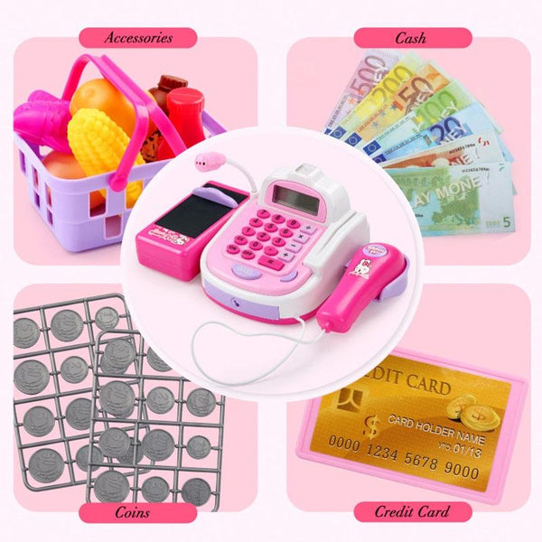 Mini Analog Supermarket Checkout Cash Register Set Child Role Playing Toy 46 PCS / SetBlue