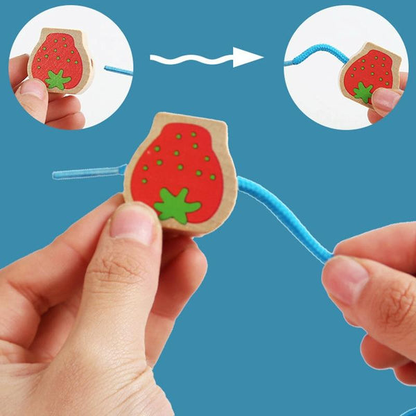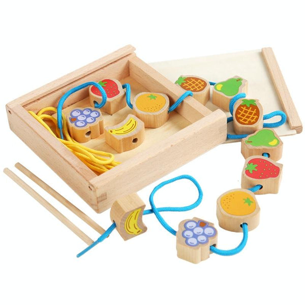 Monki Children Wooden Fruits Beads Building Blocks Wearing Rope Game Puzzle Toys