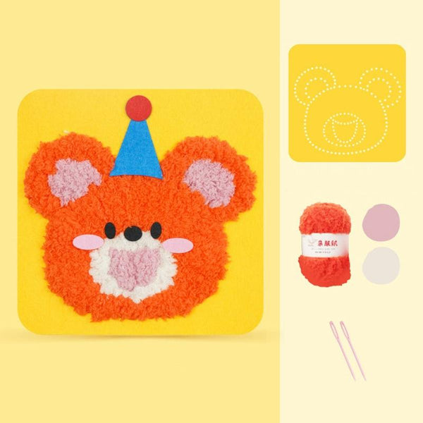 Montessori DIY Embroidery Board Kindergarten Children Cartoon Wool Stitching Material Kit, Style: Bear