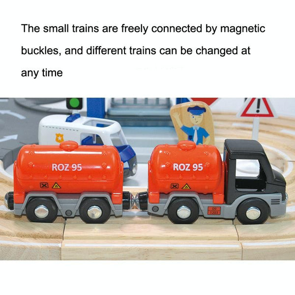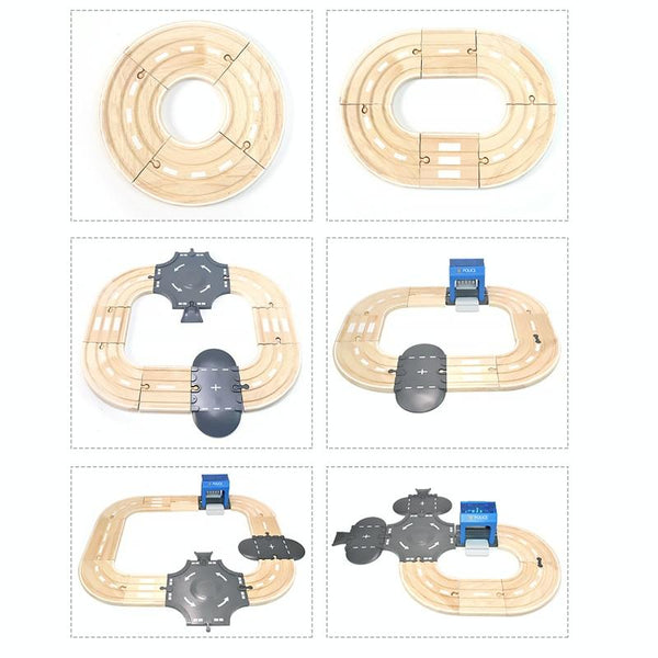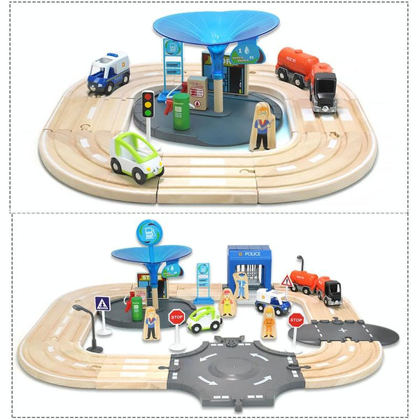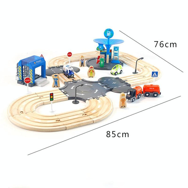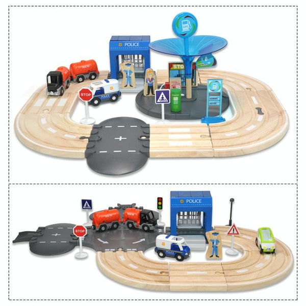 Multifunctional Wooden Police Station Road Track Set Baby Assembling Building Blocks Educational Early Education Toys