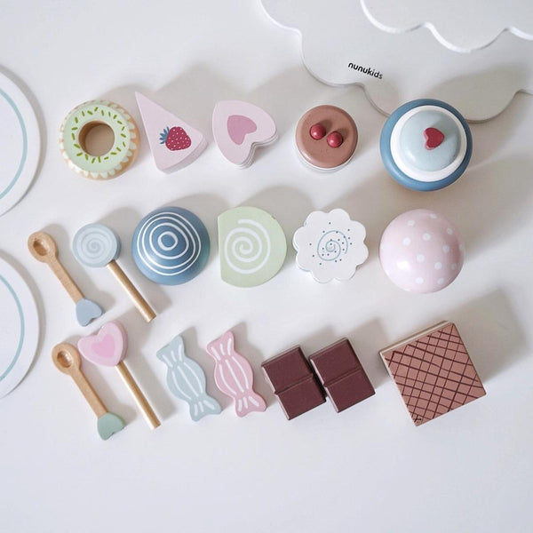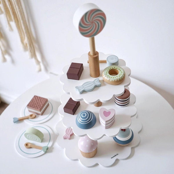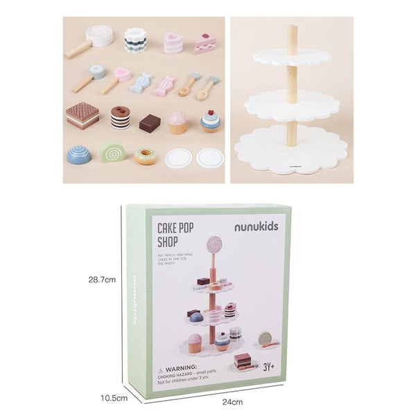 NUNUKIDS Wooden Cake Toy Afternoon Tea Children Pretend Play Toys Cake Tower
