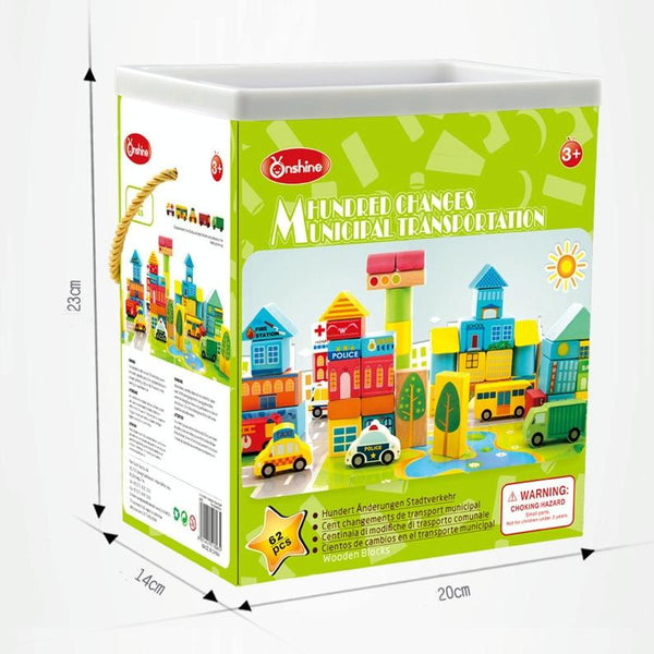 Onshine Wooden Puzzle Children Toy 62 PCS City Traffic Scene Building Blocks