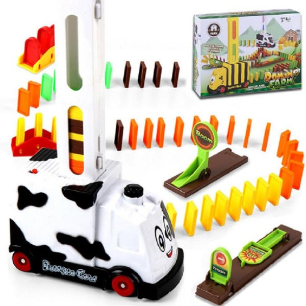 Puzzle Domino Car Electric Train With Sound And Light Music Automatic Licensing Electric Car Toy(White Cow)