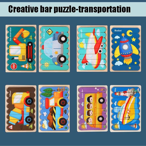 QBT01 Children Double-Sided Wooden Puzzle Bar Puzzle Toy(Mud Tanker + Truck)